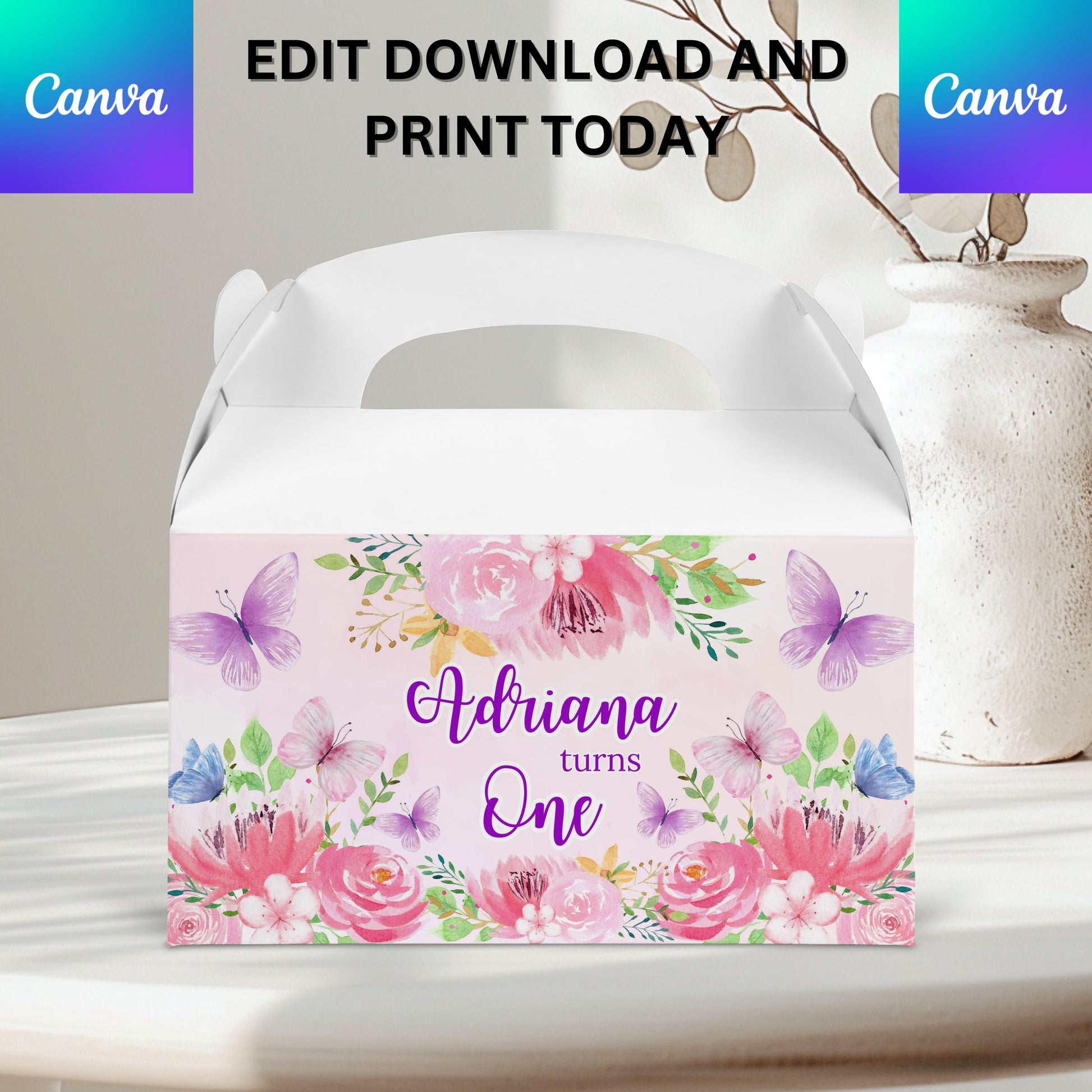 Editable Butterfly & Flowers Gable box (Digital File)